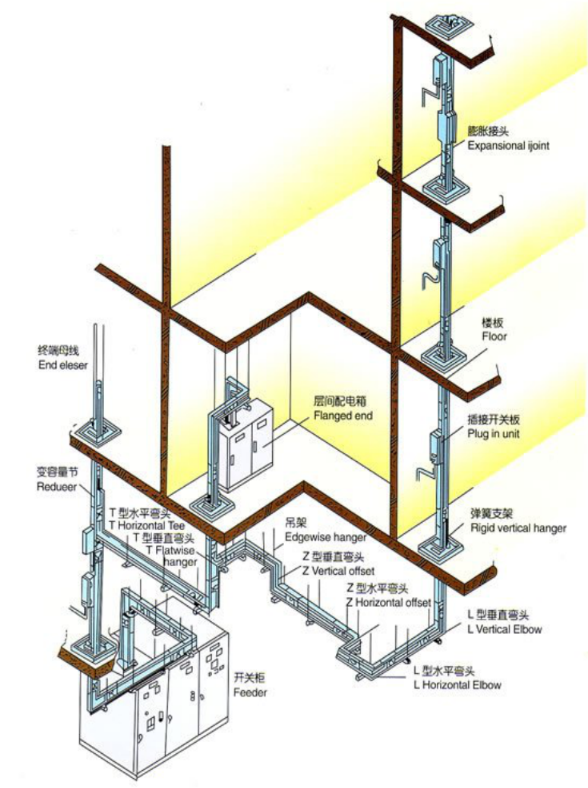 前端母線(xiàn),為電源引進(jìn)單元,可直接與變壓器或低壓配電屏銜接。變?nèi)萘抗?jié),為母線(xiàn)變換容量時(shí)的過(guò)渡節(jié)。