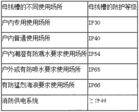 母線槽的防護(hù)等級應(yīng)根據(jù)不同的使用場所進(jìn)行確定,見表2