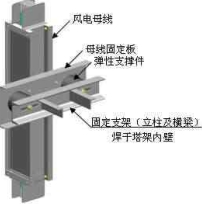 4.彈性支撐件:選用彈性支撐件作為母線安裝支架,可有用消除塔架支架誤差及風(fēng)塔轟動對母線槽的影響。